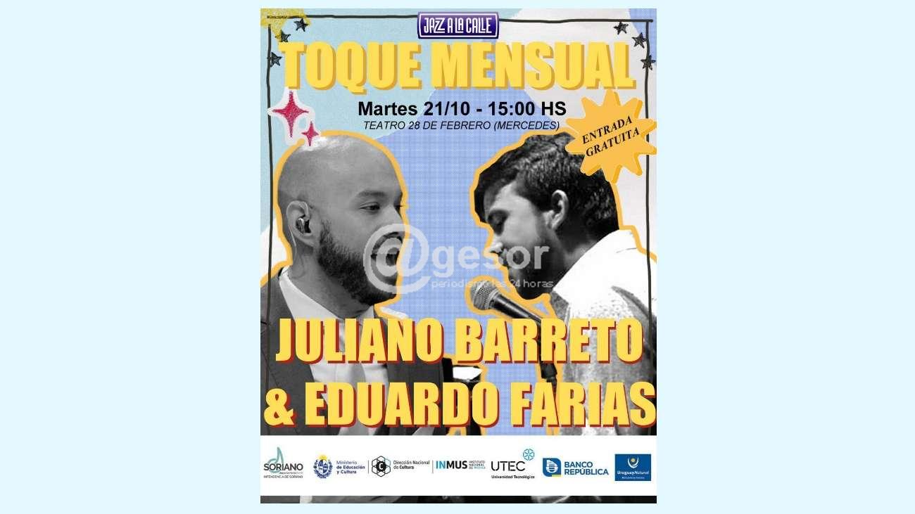 El Martes 21 de Octubre a las 15 horas se realizará el último toque mensual del 2025 de Jazz a la Calle. En la oportunidad se presentará el dúo integrado por Juliano Barreto y Eduardo Farías.