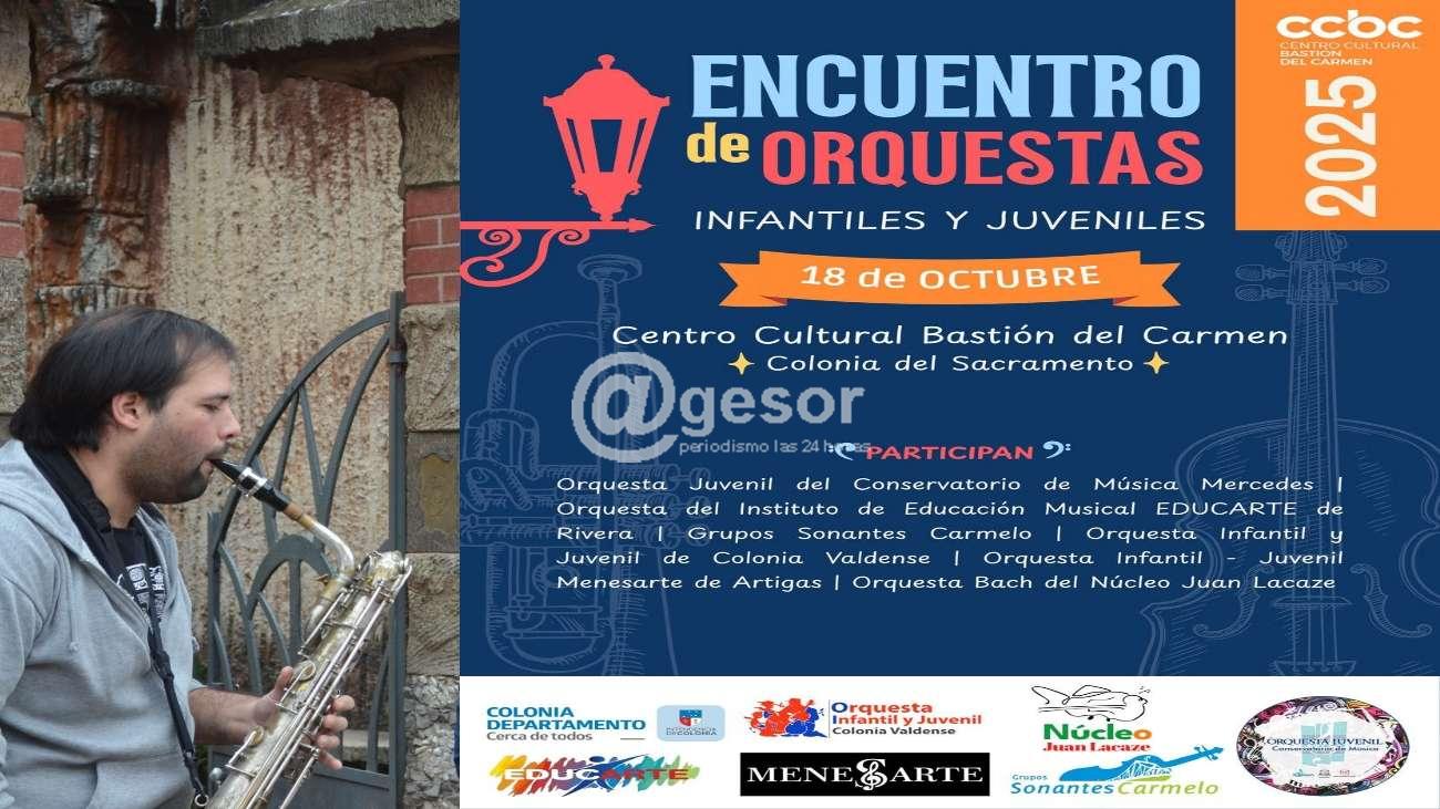 La Intendencia de Colonia, a través de la Dirección de Cultura informa que, el próximo sábado 18 de octubre de 2025, se llevará a cabo en el Centro Cultural Bastión del Carmen el Encuentro de Orquestas Infantiles y Juveniles, Declarado de Interés Departamental.