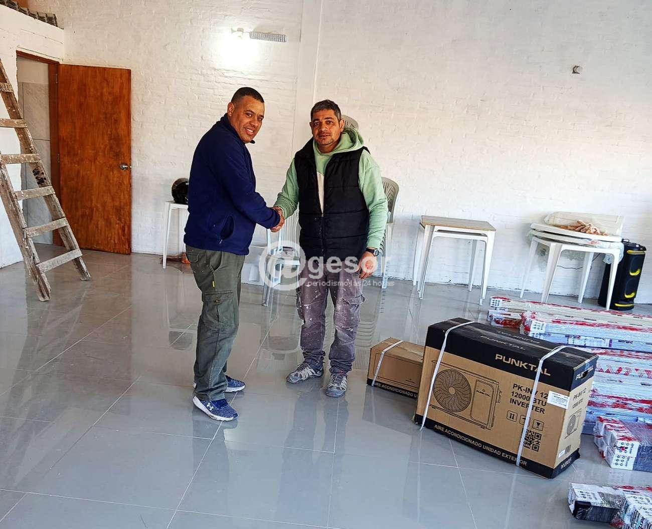 El Centro de Pinturas INCA Mercedes ubicado en José E. Rodó esq. avda. Lavalleja de la capital sorianense, representado por su titular Walter Andrés "Coquito" Cufré, hizo entrega a representantes de las Cooperativas COOVISIN C y COOVISIN B, de un equipo de aire acondicionado a cada una de ellas, para el salón comunal, apoyando a las familias que las integran en el emprendimiento de la construcción de sus casas.