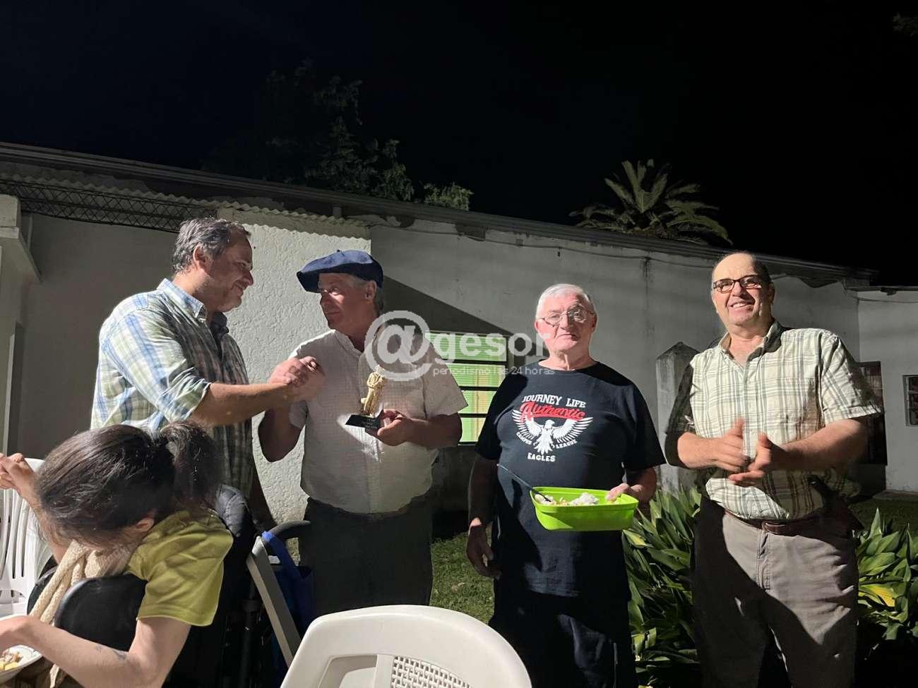Posteriormente, el intendente Besozzi asistió a la reunión de evaluación de la Fiesta del Emigrante en Cañada Nieto. Durante el encuentro, recibió la distinción de la estatuilla del Emigrante, un importante gesto de reconocimiento por parte de los organizadores del evento.