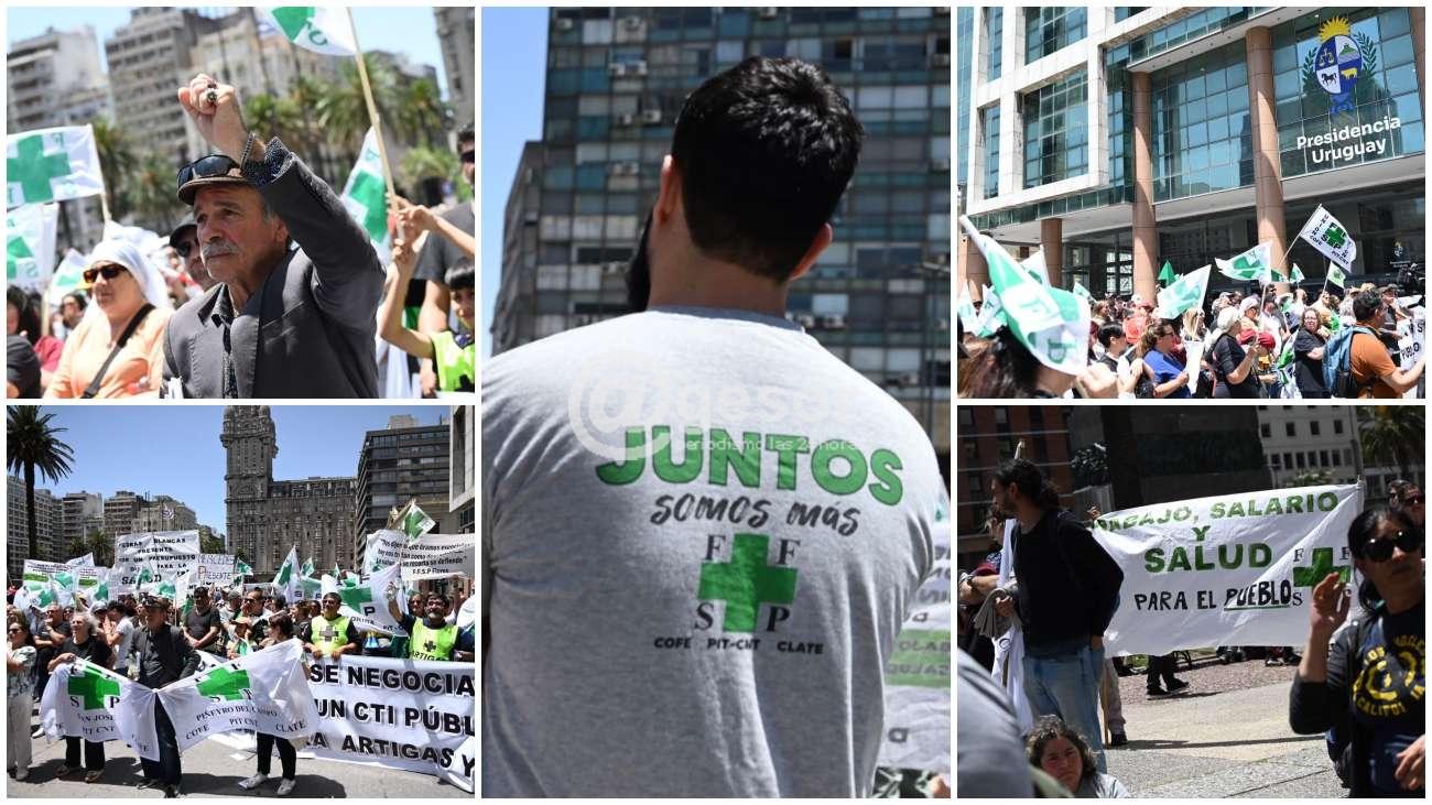 La Federación de Funcionarios de la Salud Pública (FFSP) realizó este martes una manifestación frente a Torre Ejecutiva para reclamar avances en materia salarial, mejorar las condiciones laborales y de seguridad del personal, y regular la tercerización en ASSE. Asimismo, manifestaron la necesidad de generar una ley que permita que los funcionarios de la salud puedan jubilarse de forma anticipada a los 55 años.