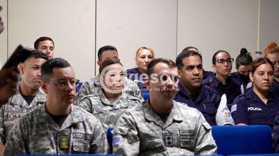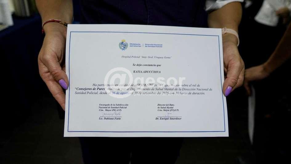 De la ceremonia de entrega en Montevideo, junto con la Subsecretaria del Ministerio del Interior, Cra. Gabriela Valverde, participaron el Encargado de la Dirección Nacional de Sanidad Policial, Comisario Mayor (PT) (CP) Dr. Julio César Rappa Anido, la Encargada de la Subdirección Nacional de Sanidad Policial, Comisario Mayor (PT) (CP) Lic. Dahiana Evelyn Farto Blanco, Directora Técnica de Hospital Policial, Comisario Mayor (PT) (CP) Dra. Verónica Pérez, el Director del Departamento de Salud Mental de Sanidad Policial, Comisario Mayor (PT) (CP) Dr. Enrique Smerdiner y la Coordinadora de la Unidad de Estrés, Comisario Mayor (PA) Lic. en Psicología Karina Cuitiño.