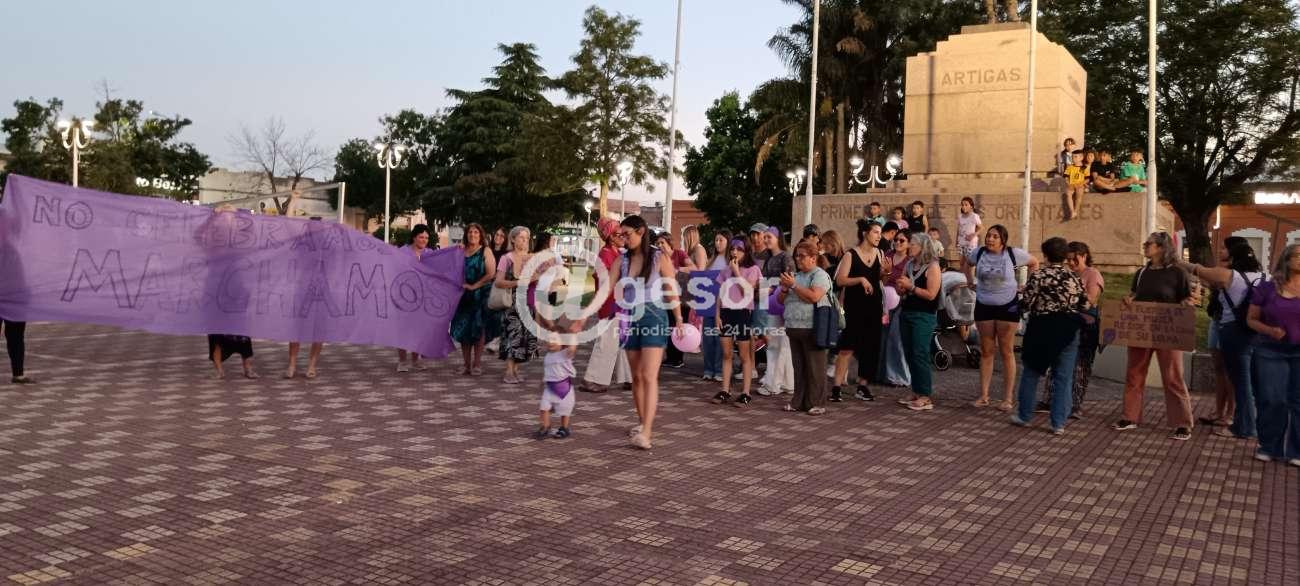 Mujeres autoconvocadas de Mercedes se manifestaron en este 25 de noviembre, en el Día de la Eliminación de la Violencia contra la Mujer. Al caer la tarde se congregaron en Plaza Independencia y caminaron, por calle Colón hasta Plaza Artigas, con una pancarta que resumía el sentimiento que las convocó: “No celebramos, Marchamos”.