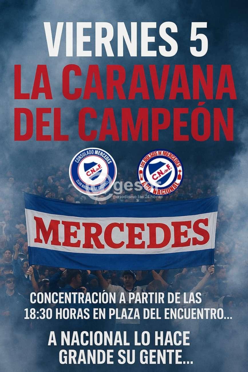 Atención Mercedes!!! Este viernes 5 la caravana del Campeón!!! A NACIONAL lo hace grande su gente...