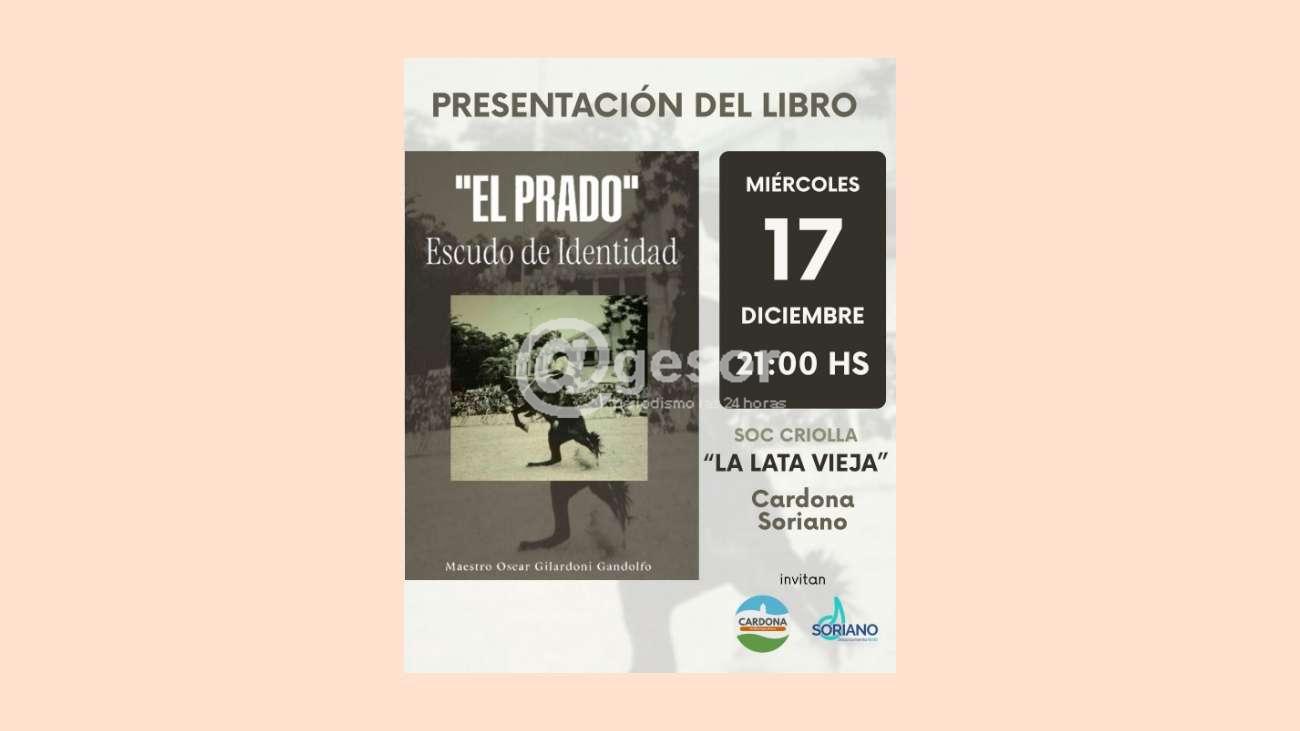 El Municipio de Cardona y la Dirección de Cultura a través del Sistema de Bibliotecas invita a toda la comunidad a la presentación del libro “El Prado: Escudo de Identidad”, del maestro y profesor Oscar Gilardoni Gandolfo, la cual se desarrollará el próximo miércoles 17 de diciembre, a la hora 21:00, se realizará la presentación en la sede de la Sociedad Criolla La Lata Vieja, en Cardona.