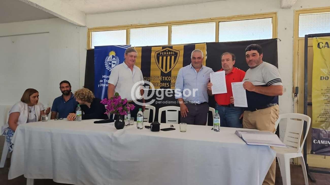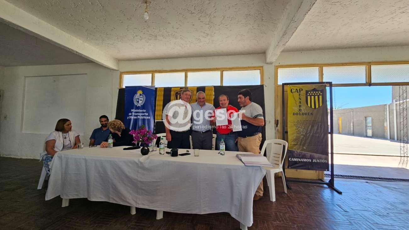 Este viernes 12 de diciembre, el director nacional de Arquitectura, Martín Tierno, estampó su firma en una serie de convenios sociales con seis instituciones de San José, Colonia, Flores y Soriano. La ceremonia en Soriano se desarrolló en el Club Atlético Peñarol de Dolores, donde también estuvo presente el Intendente Guillermo Besozzi, acompañando la rúbrica de un convenio entre el Ministerio de Transporte y Obras Públicas y la institución aurinegra.