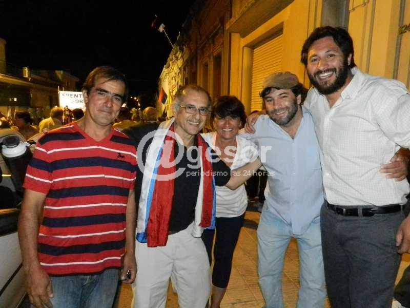 Desde hace un tiempo se viene manejando la posibilidad que en las próximas Elecciones Nacionales comparezcan juntos en Soriano, los grupos que impulsan las candidaturas a la diputación de Julio Guastavino por un lado y de Antonio Benítez por el otro. En la noche de este viernes, el Frente Unido realizó el lanzamiento de la campaña de Julio Guastavino, con la presencia de dirigentes nacionales y si bien es algo que se acostumbra a nivel del Frente Amplio en general, llamó la atención la cantidad de dirigentes del Partido Comunista que ya anunció la candidatura a la diputación del actual primer vicepresidente de la Junta Departamental de Soriano, Antonio Benítez, acompañando el acto de Guastavino. Allí pudimos apreciar además del propio Benítez junto al escenario siguiendo atentamente el discurso de Guastavino -como lo muestra la fotografía- a Víctor Hugo Aguilar, Marita Magallanes, Ruben Bacciarini, entre otros, inclusive Aguilar y Bacciarini posaron para @gesor junto a Guastavino.
