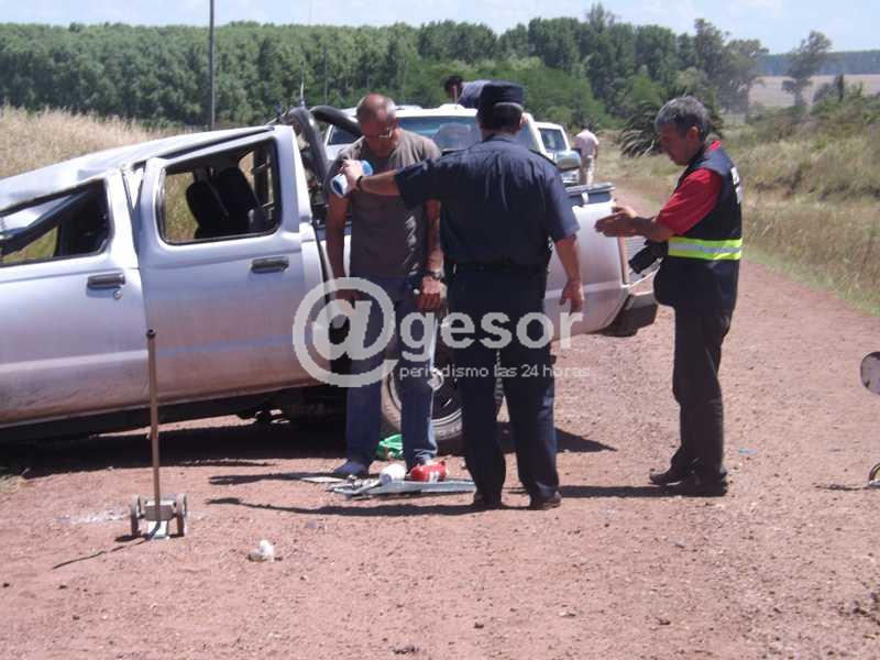 La camioneta se dirigía con dirección a ruta 14 y terminó derrapando a escasos metros de la carretera, habiéndose determinado que el conductor no llevaba colocado el cinturón de seguridad, por lo que salió despedido del rodado, quedando tendido sobre el piso a unos metros del vehículo.