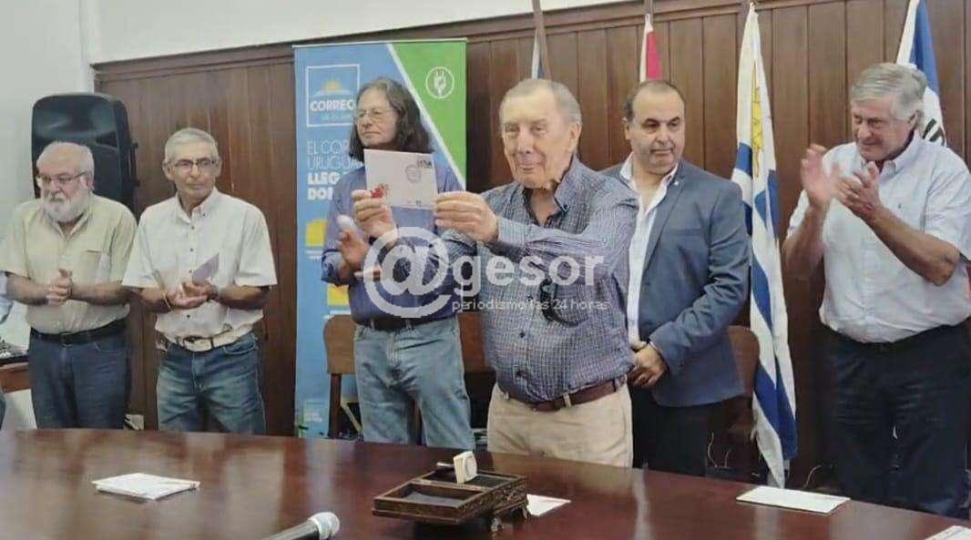 La jornada tuvo, además, una dimensión institucional de singular relevancia. Se presentó oficialmente el sello conmemorativo emitido por el Correo Uruguayo, pieza filatélica que incorpora este aniversario al registro postal de la República y proyecta el nombre de Cardona dentro y fuera de fronteras.