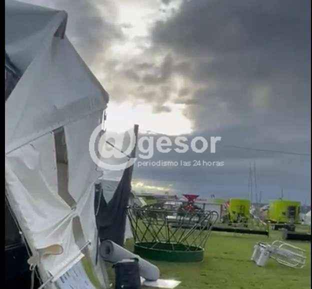 El fuerte viento registrado en la tarde de este martes provocó daños en las instalaciones de la Expoactiva Nacional. Como se sabe la inauguración de la 29ª Expoactiva se realizará este miércoles, por lo que durante la jornada de este martes el trabajo fue intenso en todo el predio ajustando los detalles de cada uno de los stand. El fuerte viento provocó una serie de roturas en diversas estructuras, sumado a la lluvia, lo que provocó una serie de contratiempos. Al caer la tarde los trabajos continuaban, trabajo que se retomará en las primeras horas del día intentando llegar a tiempo a la hora de la inauguración de la muestra.