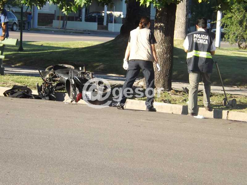 Según testigos, los ocupantes del birrodado iban sin casco y la moto se desplazaba a una velocidad que llamaba la atención, en forma de zig zag, transitando en una primera instancia por De la Ribera, con dirección esta a oeste, hasta subir por Colón, impactando contra una columna del alumbrado público ubicada a la derecha, casi a mitad de cuadra, frente al Rosedal.