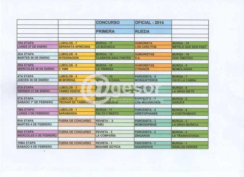 La primera rueda del Concurso oficial de Murgas 2014 en Montevideo comenzará el 29 de enero y se extenderá hasta el 8 de febrero.