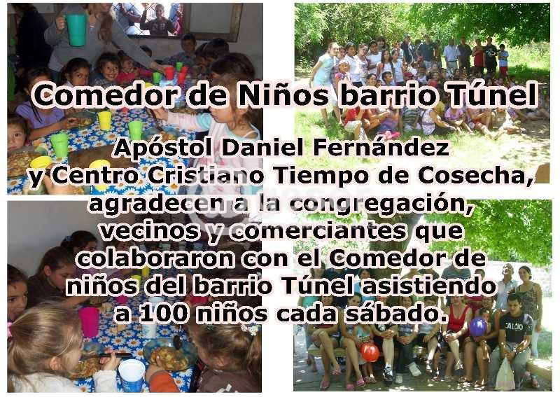 Apóstol Daniel Fernández y Centro Cristiano Tiempo de Cosecha, agradecen a la congregación, vecinos y comerciantes que colaboraron con el Comedor de niños del barrio Túnel asistiendo a 100 niños cada sábado.