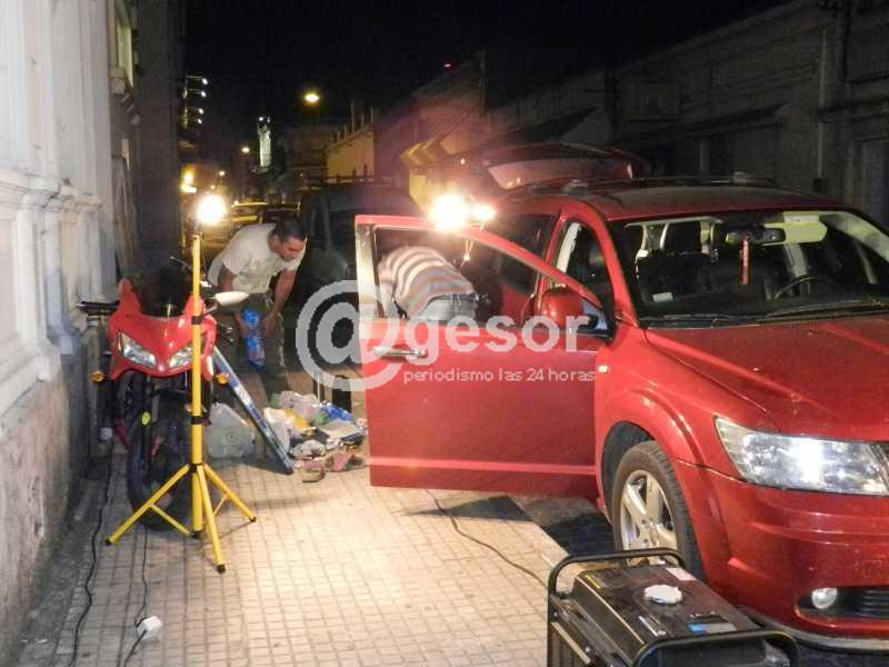 A la medianoche del domingo frente a la sede de la Dirección de Investigaciones, funcionarios de ésta realizaban inspección de vehículo, habiéndose colocado juego de focos para iluminar el lugar, allí fueron retirando pertenencias de los indagados y revisando minuciosamente la camioneta.