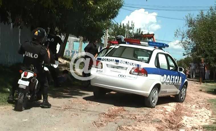 (*) En la fotografía de @gesor puede observarse cuando un hombre era detenido en la zona sur de Mercedes, en las viviendas frente a la cancha de Rovers.