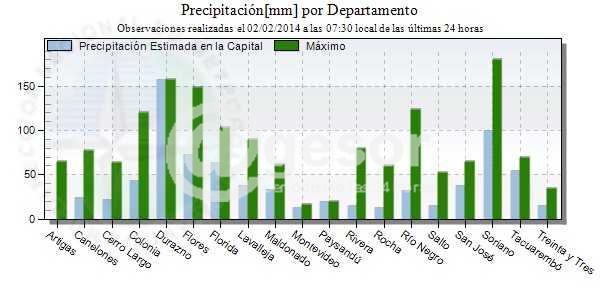 La Dirección Nacional de Meteorología mantiene el alerta naranja por tormentas fuertes y precipitaciones copiosas para esta zona del país. En Risso se registraron 180 milímetros siendo el nivel máximo de agua caída a nivel nacional, seguido de Durazno con 157,4.