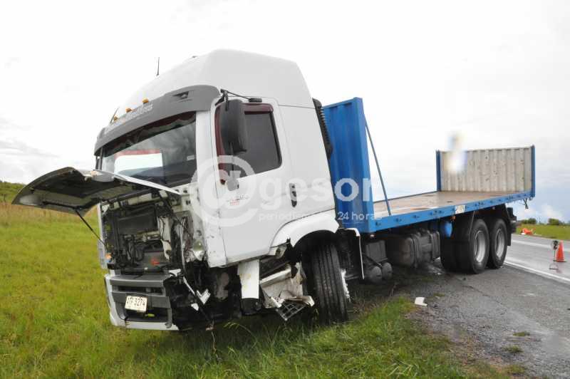 En las primeras horas de la tarde de este lunes ocurrió colisión entre camión Volkswagen mod. 24250, matrícula ATP 3264 que circulaba de Oeste a Este (Mercedes - Montevideo) guiado por José Raúl Echane de 32 años, domiciliado en Canalones, de la empresa Transportes Carballo y la camioneta de UTE que iba en sentido contrario Este a Oeste (Montevideo - Mercedes) Chevrolet C 10 matrícula MAD 9648 conducida por Oscar César De León de 59 años, domiciliado en San José.