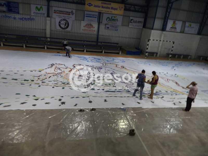 Este mural, pintado en tela ya fue dibujado por lo que este sábado, a partir de las 18 horas se realizará una actividad donde todo aquel que quiera participar podrá participar de la tarea de pintarlo. Por ese motivo se conformaron equipos de trabajo, delimitándose tareas.