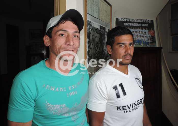 Foto: Bruno Finochi y Juan Manuel Camejo, en la Liga de Fútbol, previo a solicitar pase, ambos de Olímpico a Ferrocarril Oeste.