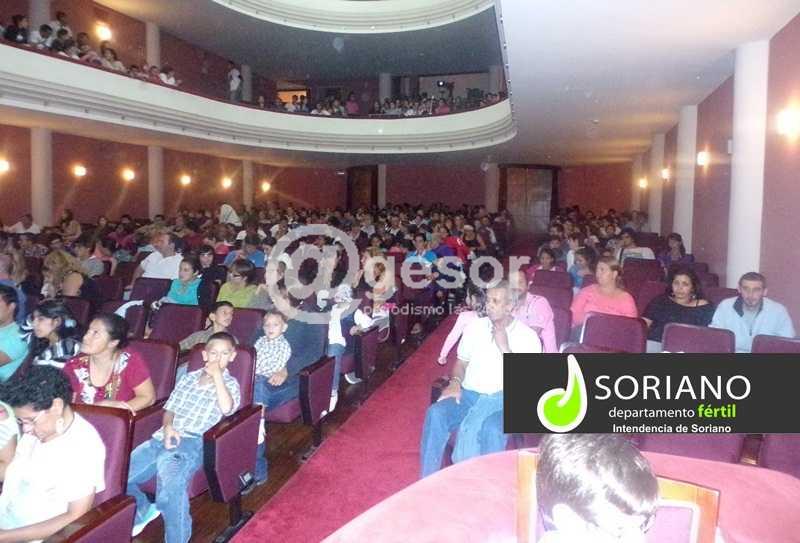 La lluvia registrada en Mercedes sobre las 21 horas obligó a la organización del Carnaval de Soriano a trasladar el espectáculo al Teatro 28 de Febrero.