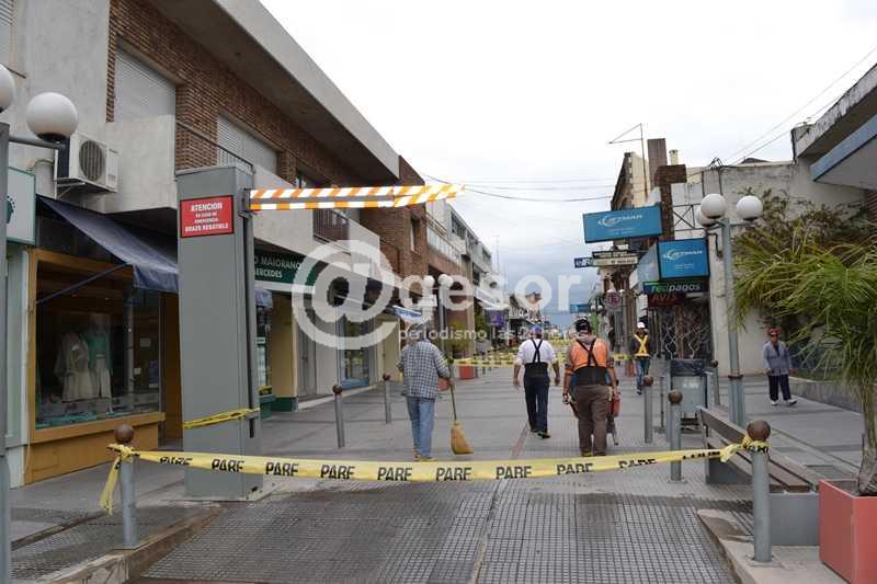 Personal de Arquitectura y Ordenamiento Territorial de la Intendencia de Soriano aguarda la finalización de reparaciones que practica OSE por caños rotos en la semipeatonal, para así poder recomponer el pavimento en algunos lugares como lo realiza habitualmente.