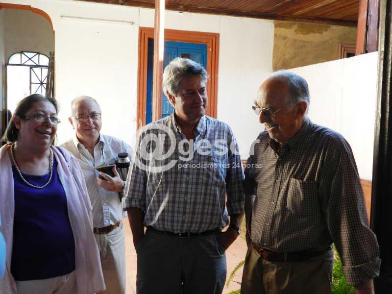 Fotografía: Michelini junto a Oscar Bello, Alicia Bello y Roberto Soca este jueves en la sede del Frente Amplio