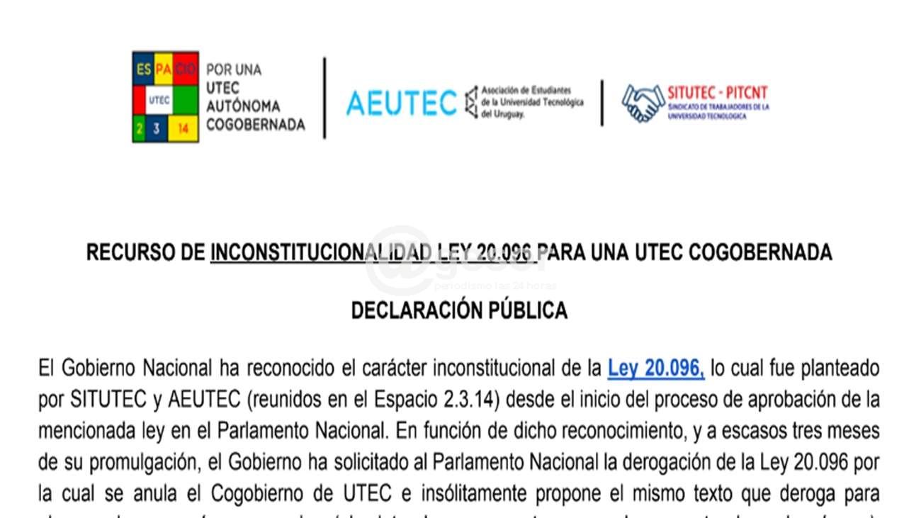 RECURSO DE INCONSTITUCIONALIDAD LEY 20.096 PARA UNA UTEC COGOBERNADA DECLARACIÓN PÚBLICA