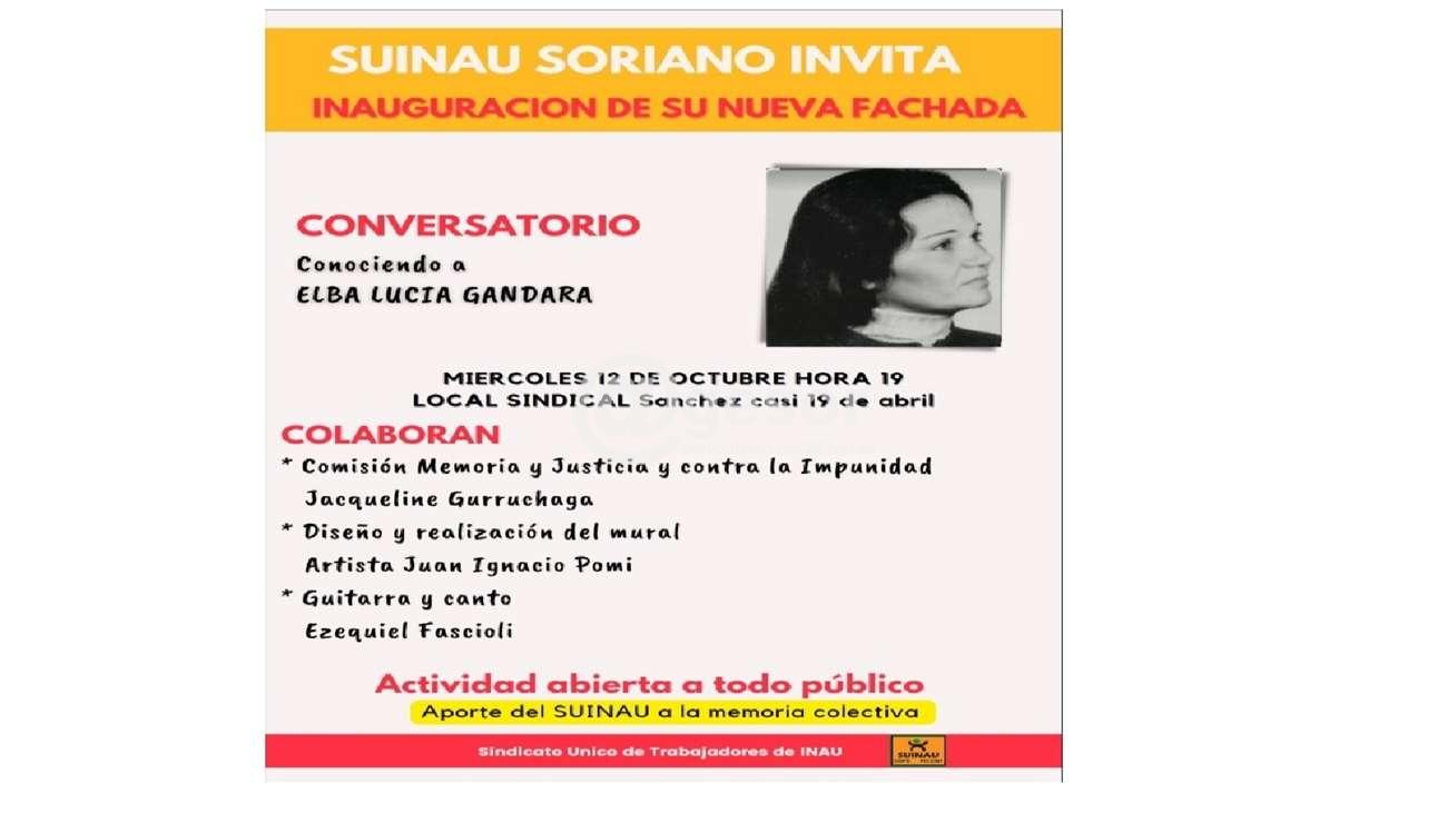El Sindicato de INAU y la Comisión Memoria, Justicia y contra la Impunidad de Soriano homenajearon a Elba Gándara, mercedaria detenida desaparecida durante la pasada dictadura cívico-militar. Suinau realizó este homenaje y descubrió un murar, pintado por el artist...