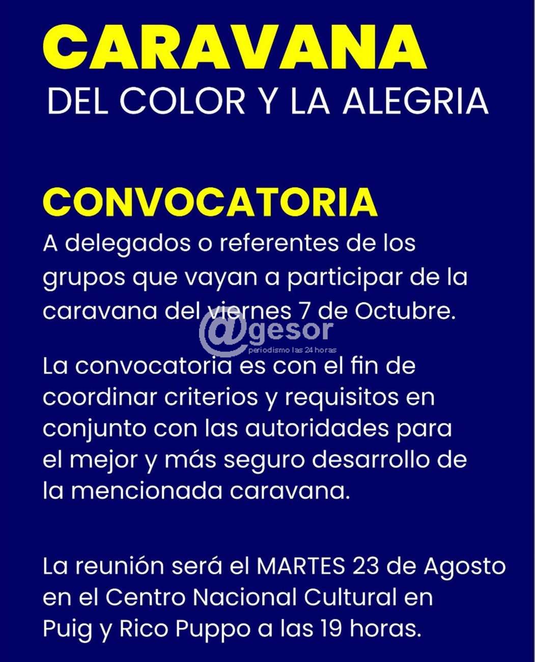 Desde el Municipio de Dolores se realiza convocatoria a delegados o referentes de los grupos que vayan a participar de la Caravana del Color y la Alegría a realizarse el viernes 7 de octubre.