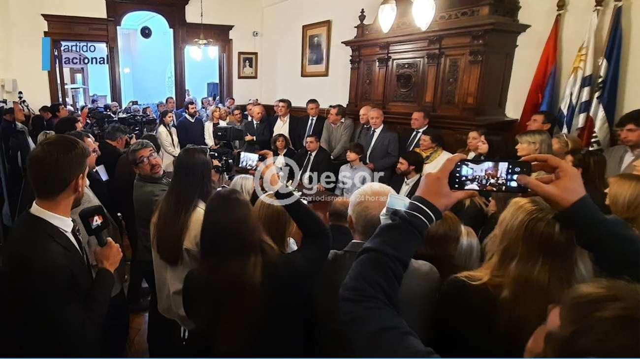 El presidente del Partido Nacional, Pablo Iturralde, junto a directores, familiares, autoridades y dirigentes record...