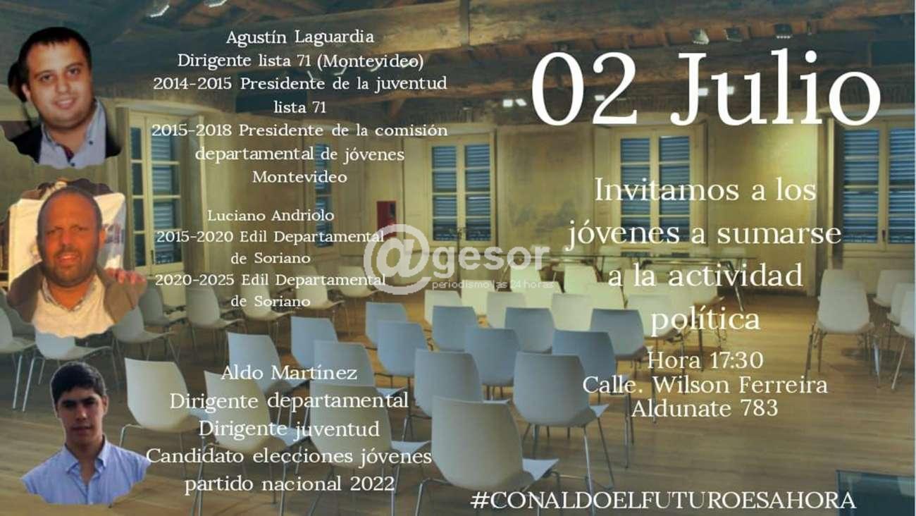 Aldo Martinez joven dirigente del Partido Nacional lanza con un montón de gurises que lo apoyan su candidatura para ser elegido co...