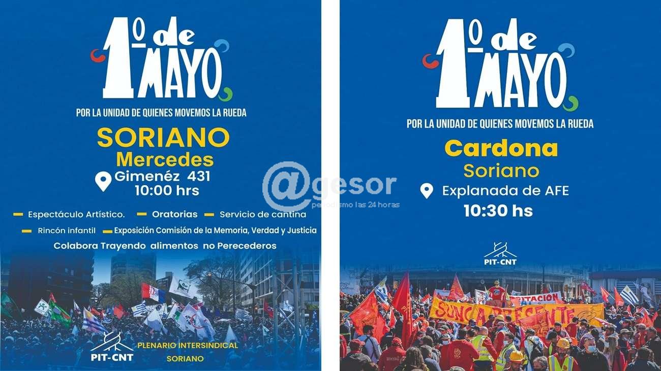 Los trabajadores de Soriano celebrarán este domingo un nuevo 1° de Mayo. En principio se han confirmado actos en Mercedes y Cardona, al tiempo que en la ciudad de Dolores se viene realizando las coordinaciones a fin de poder concretarlo.