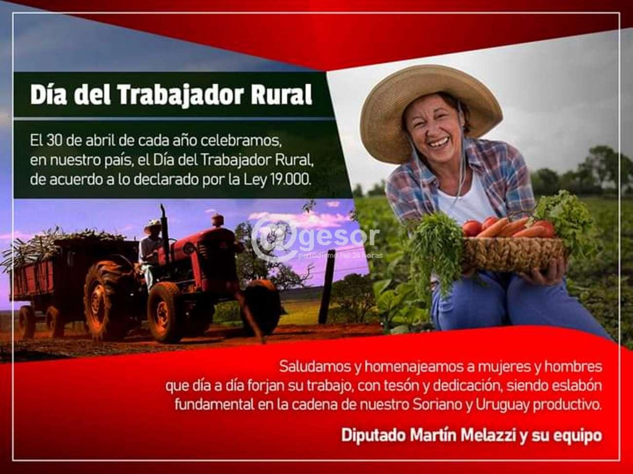 El Diputado Martín Melazzi y su equipo saluda y homenajea a mujeres y hombres que día a día forjan, con tesón y dedicación, siendo eslabón fundamental en la cadena de nuestro Soriano y Uruguay productivo