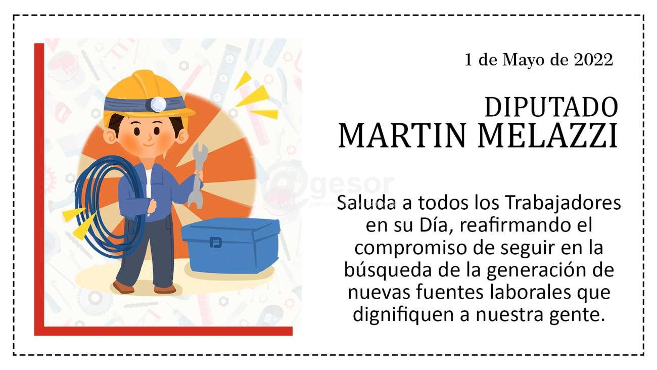 El diputdo Martín Melazzi saluda a todos los trabajadores en su día, reafirmando el compromiso de seguir enla búsqueda dela generación de nuevas fuentes laborales que dignifiquen a nuestra gente....