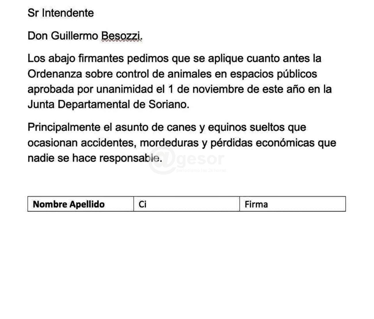 Acompañamos al Alcalde suplente de Dolores Adrián Amuz en esta juntada de firmas, para que cuanto antes se aplique en todo Soriano la Ordenanza sobre control de animales en espacios públicos aprobada en unanimidad el 1 de noviembre de este año en la Junta Departamental de Soriano. Tenemos formularios para los que quie...