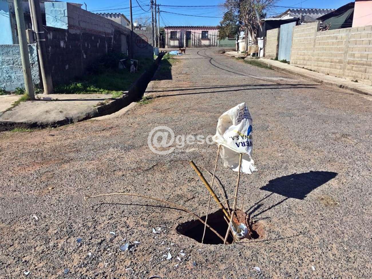 En recorrida por barrio Chaná, el Edil José Lavista, junto al Edil Luciano Andriolo vecinos nos muestran un pozo que hay en calle Kelly y Aída Vespa. Ahí donde está la cámara de saneamiento, debido al intenso tránsito es que se va agrandando el mismo.