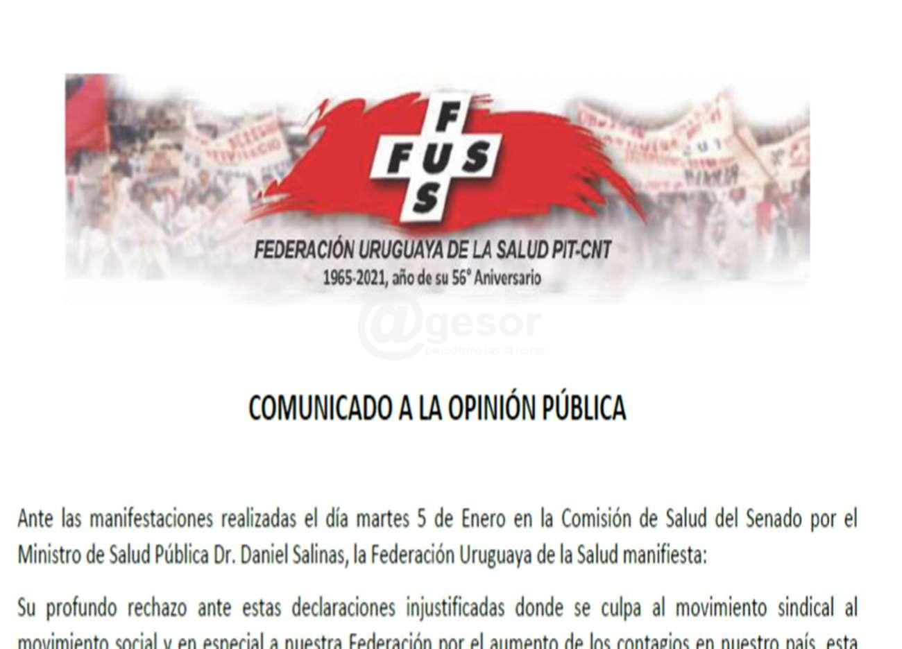 “No alcanza únicamente con responsabilizar a la gente por el incremento de los casos” de Covid-19, expresa la FUS “comprendemos que el Ministro no tenga respuestas ante el incremento exponencial de contagios, pero una afirmación tan imprudente nos genera dudas acerca de cuál es el verdadero propósito...