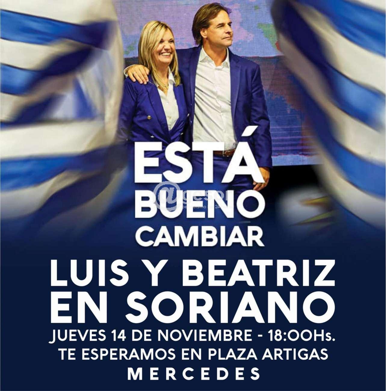 En una colmada y colorida Plaza Artigas, en Mercedes, la fórmula presidencial del Partido Nacional, de Luis Lacalle Pou y Beatriz Argimón, encabezó el acto de cierre de campaña en el departamento, de cara al acto de balotaje del próximo 24 de noviembre.