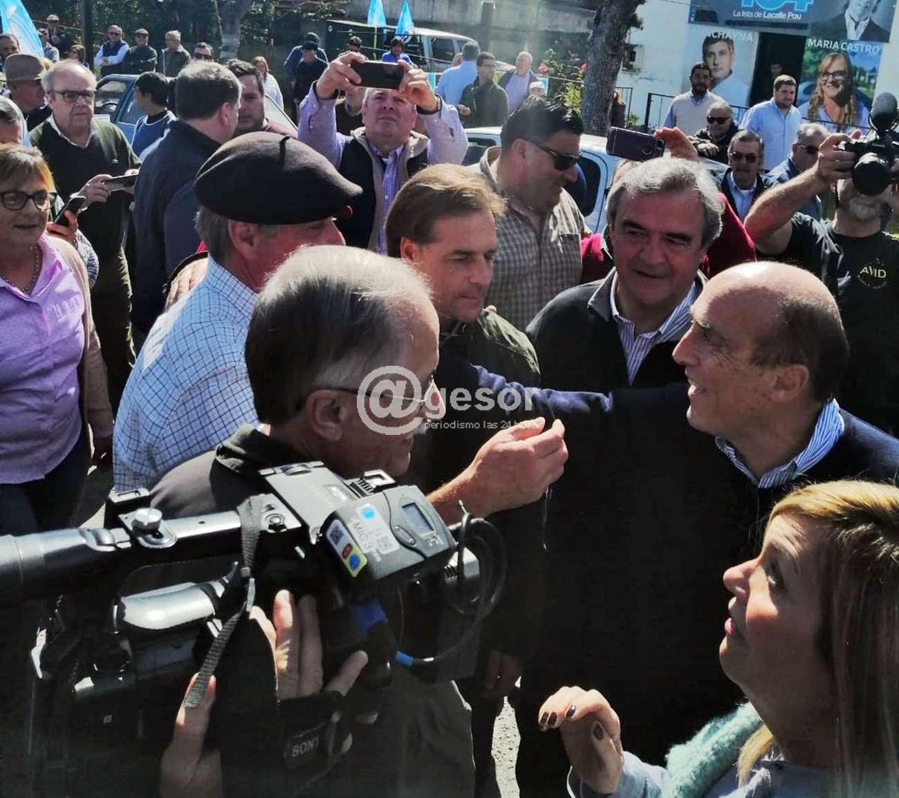 En nota anterior @gesor dio cuenta del saludo del candidato del Frente Amplio a la Presidencia de la República, Daniel Martínez, acompañado del Presidente del Frente Amplio de Soriano, Roque Arregui, a la fórmula del Partido Nacional, de Luis Lacalle Pou y Beatriz Argimón, que a escasos metros de donde estaban ...