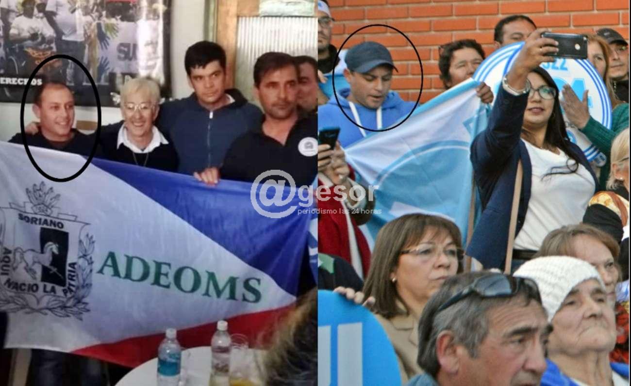 Por éstas horas se ha generado polémica en la interna de los trabajadores de la comuna de Soriano en virtud de fotos que han aparecido públicamente donde dos de los integrantes de ADEOM Soriano, su presidente Martín Herling y el dirigente Henry Herman sostienen la bandera del sindicato y posan con ella, con la candida...