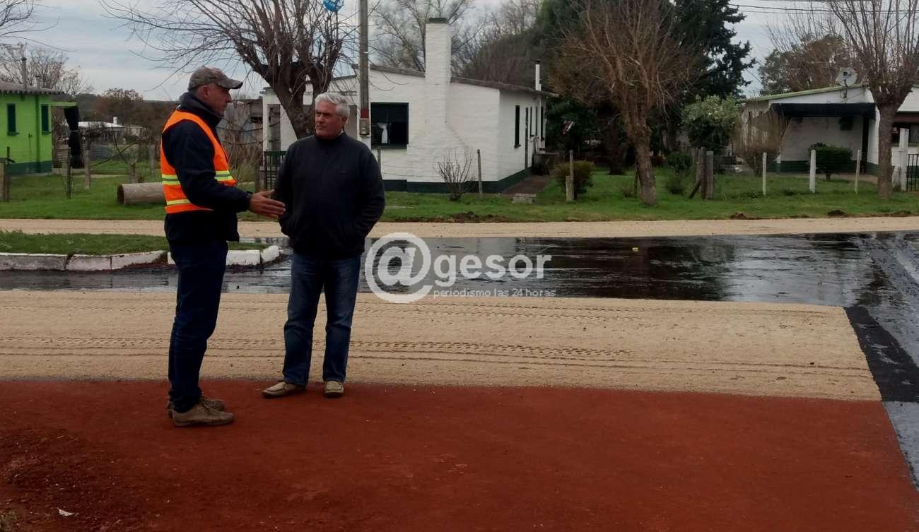 El intendente Agustín Bascou visitó Sacachispas este lunes para observar la continuidad de las obras de reacondicionamiento de las calles, con trabajos que se centraron en la aplicación de asfalto en unas 11 cuadras.