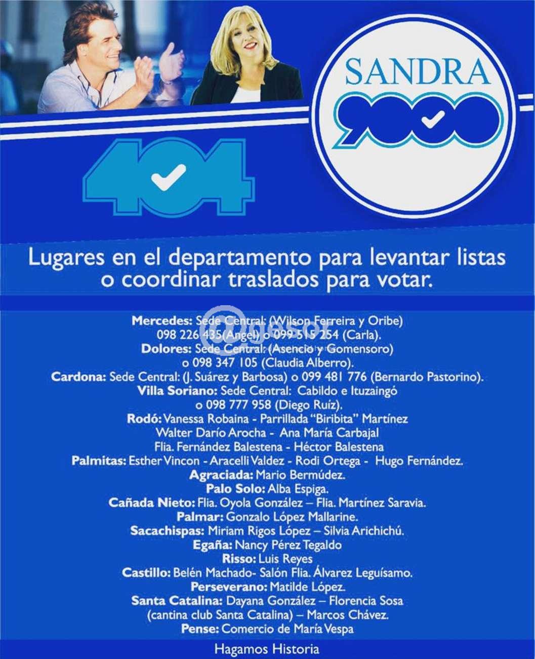 LUGARES DONDE ENTREGAN LAS LISTAS 404 Y 9000404 - 9000MERCEDESSEDE CENTRAL: Wilson Ferreira y Oribe, 098 226 435 (Angel) o 099 515 254 (Carla).DOLORESSEDE CENTRAL: Asencio y Gomensoro, 098 347 105 (Claudia Alberro).CARDONASEDE CENTRAL: J...