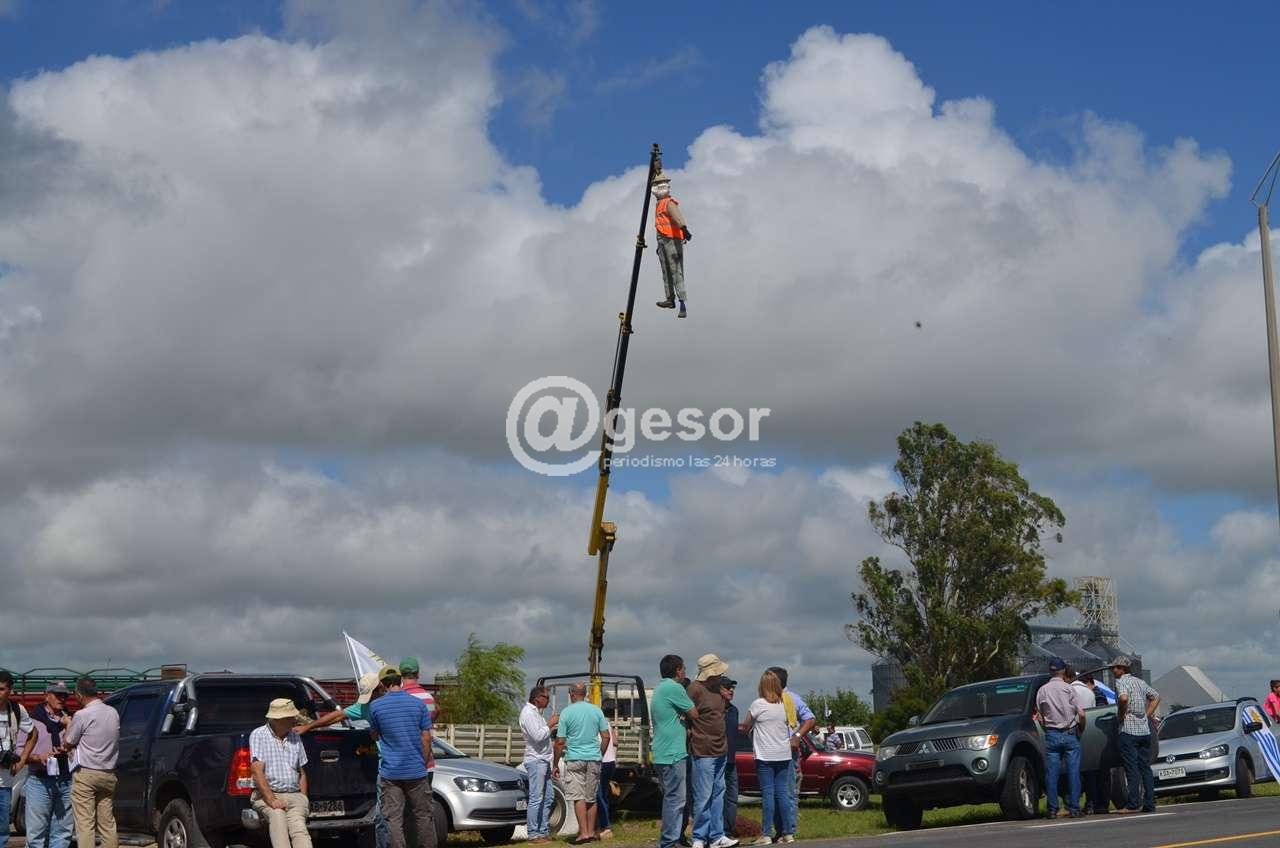Con carteles y banderas uruguayas sobre sus vehículos productores rurales de Palmitas, Risso, Egaña, Rodó, Cardona y otras zona del departamento se manifestaron en la mañana de este lunes en las ...