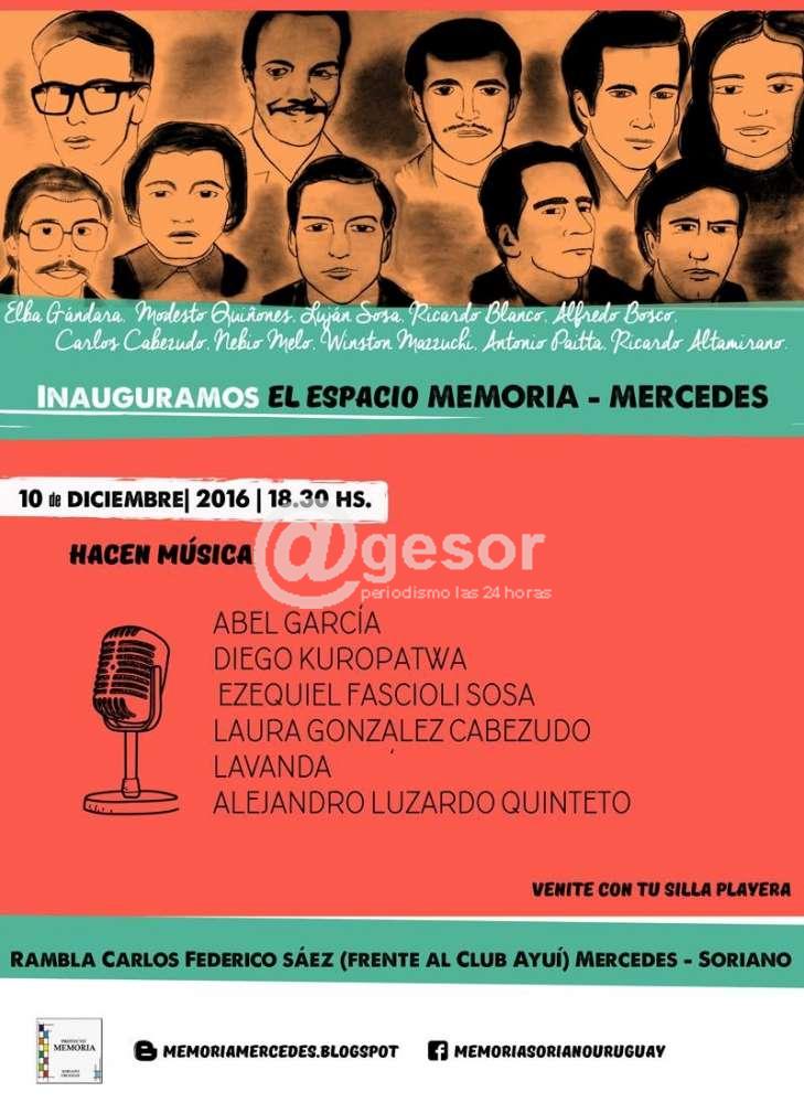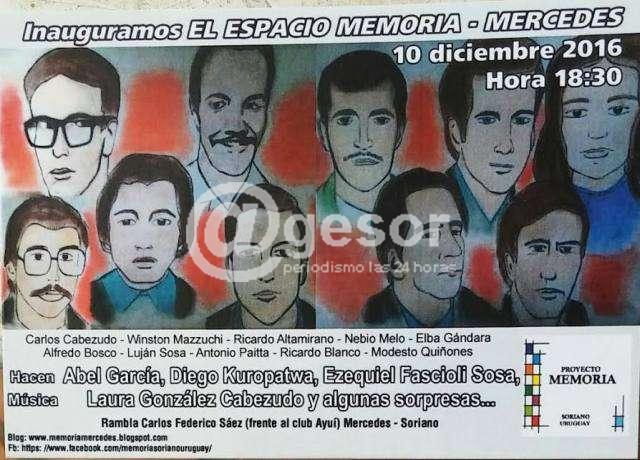 El 10 de diciembre se conmemora el Día Internacional de los Derechos Humanos. En esa fecha en esta ciudad se inauguró el “Espacio Memoria” que homenajea a los 10 detenidos desaparecidos del departamento de Soriano, a todos los detenidos desaparecidos del país, y a las decenas y decenas de detenidos desaparecidos ...