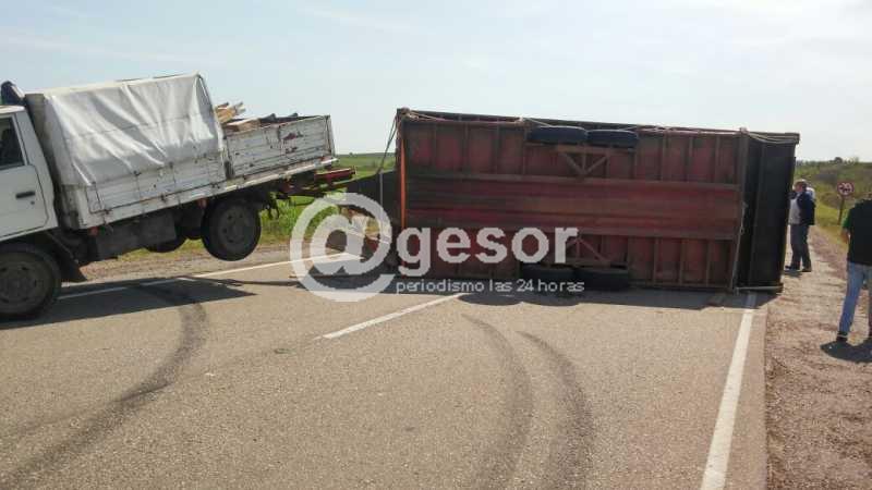 Un accidente de tránsito se produjo este miércoles en la Ruta 21, a la altura del kilómetro 343, entre las ciudades de Dolores y Mercedes. Por allí circulaba un camión utilitario, conducido por Pedro Graña, tirando una zorra, con un contenedor, registrándose el vuelco de la zorra con su carga. Deb...