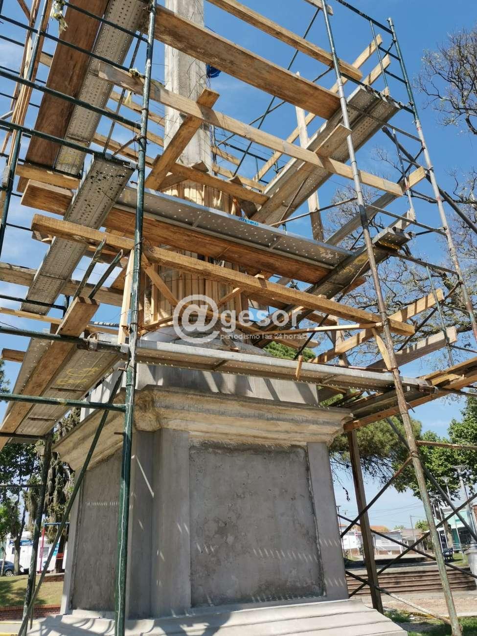 Los trabajos en la conformación de la nueva columna de la Libertad en plaza Rivera avanzan notoriamente, destacándose la colocación del encofrado en la parte inferior de dicha columna.