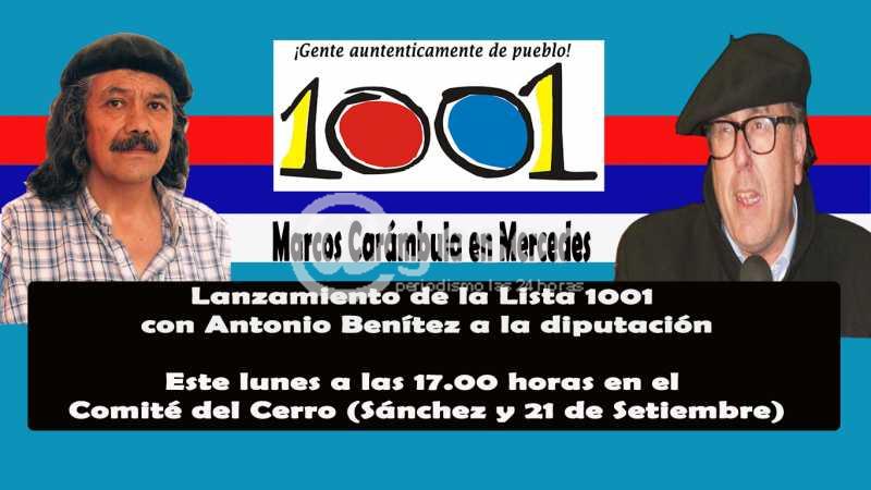 En el Comité "Eugenio Aguilar" de Mercedes con la presencia del exIntendente de Canelones y primer titular en la Lista al Senado del Espacio 1001, Dr. Marcos Carámbula, se realizó el lanzamiento de la Lista 1001 que lleva a la diputación al actual edil Antonio Benítez.