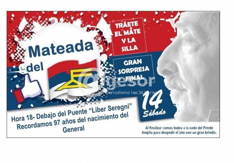 Sobre la tardecita de este sábado los militantes frenteamplistas de Soriano se congregaron debajo del puente de la Ruta 2 que atraviesa el río Negro, a la altura de Mercedes, en una "mateada" que sirvió para homenajear al General Líber Seregni, quien ideó y llevó adelante la concepción de es...
