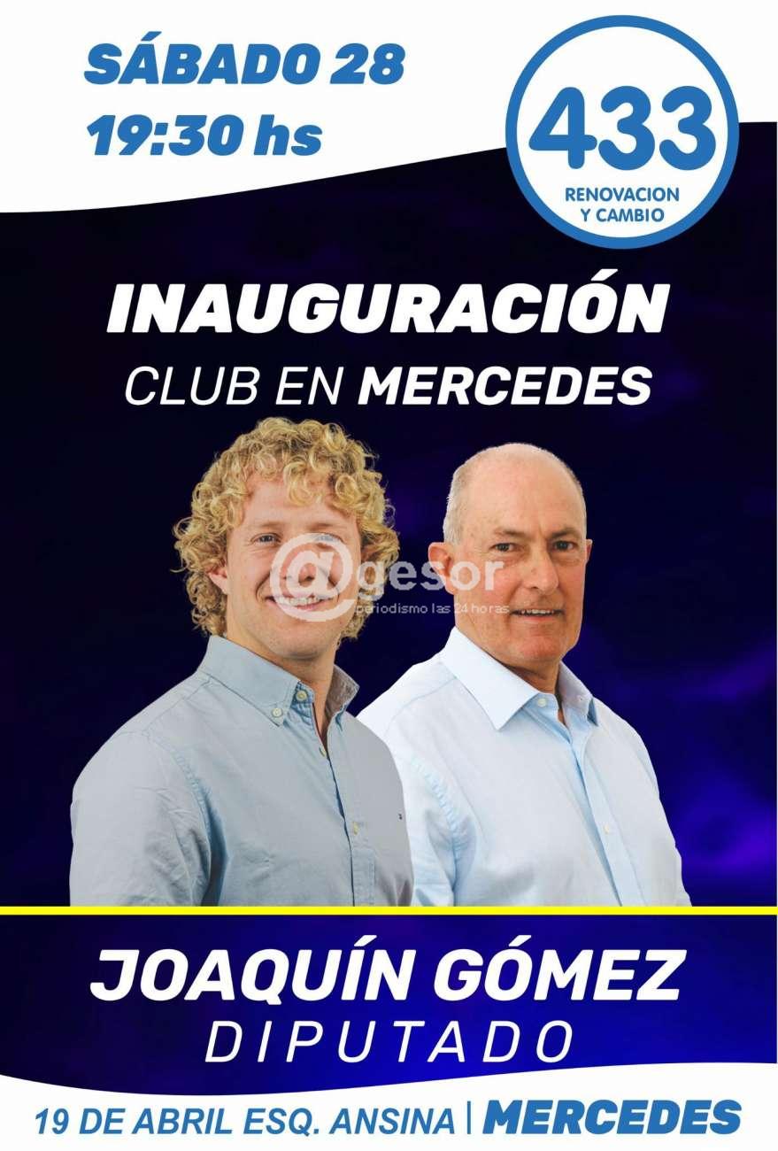 Este martes 1 de octubre inauguración de baluarte partidario de la 433 en Mercedes, con la fórmula de JOAQUÍN GÓMEZ - FEDERICO GARCÍA a la diputación y estará JAVIER GARCÍA candidato al Senado