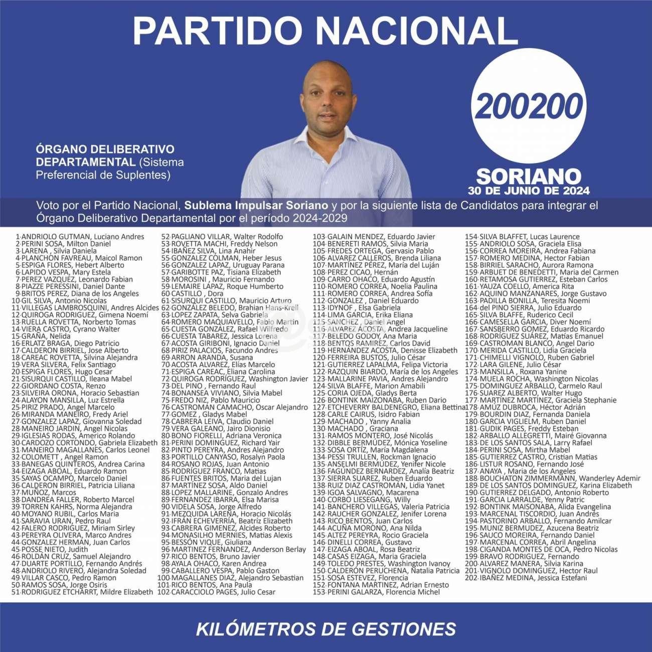 La 404 lista oficial de Alvaro Delgado a nivel nacional, en Soriano la lidera Guillermo Gutiérrez, y es acompañada de la 522 en lo departamental con Carlos Aunchayna.
